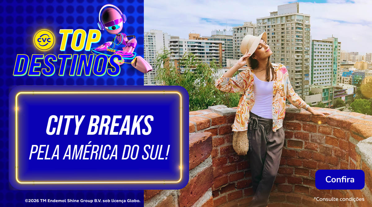 Estas ofertas são válidas apenas para os destinos e datas aqui indicados e estão sujeitas à disponibilidade no momento da compra. Consulte taxas adicionais, termos e condições completos e demais informações extras em uma de nossas lojas físicas CVC mais próxima de você.