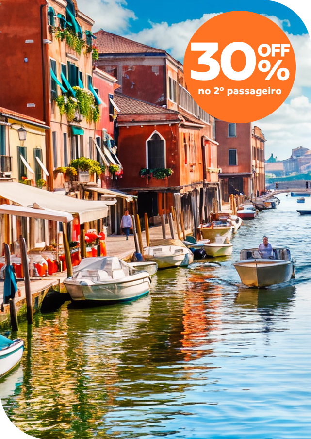 | | *Taxas inclusas. Consulte condições. | | |  | Itália Turística | 7 dias | Roma > Florença > Veneza > Milão | | | ✓ Hospedagem | Café da manhã ✓ Passeios com guia ✓ Transporte por todo o roteiro ✓ Saída em 24/04/2026 | | | A partir de | 12x R$ 751 Valor total R$ 9.012 pro 1º passageiro* |